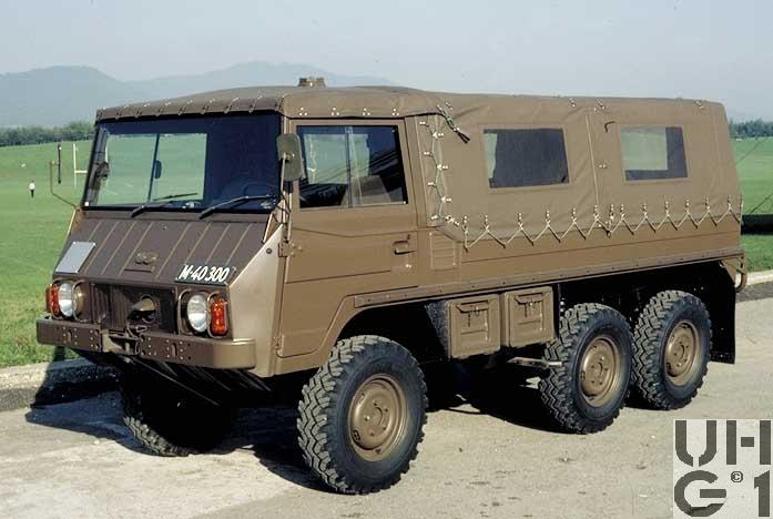 | Getriebe | Hauptgetriebe Hersteller ZF Typ S 5-18/3 Mechanisches Zahnrad Wechselgetriebe Sämtliche Vorwärtsgänge sperrsynchronisiert Rückwärtsgang mit Klauenkupplung 5 Vorwärtsgänge 1 Rückwärtsgang Stockschaltung Übersetzung 1. Gang 5,33:1 2. Gang 3,24:1 3. Gang 2,04:1 4. Gang 1,30:1 5. Gang 1,00:1 R. Gang 5,47:1 Verteilergetriebe Mechanisches Reduktions- und Verteilergetriebe am zentralen Tragrohr und am Hinterachsantrieb angeflanscht 2 sperrsynchronisierte Gänge Übersetzung 0,88:1 Strassengang 1,69:1 Geländegang Bedienung der Schaltung Schalthebel Weiss: Hauptgetriebe Schalthebel Schwarz: Gruppengetriebe Je 1 Hebel für: Vorderradantrieb Differentialsperre hinten Differentialhebel vorne |