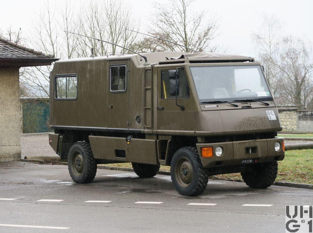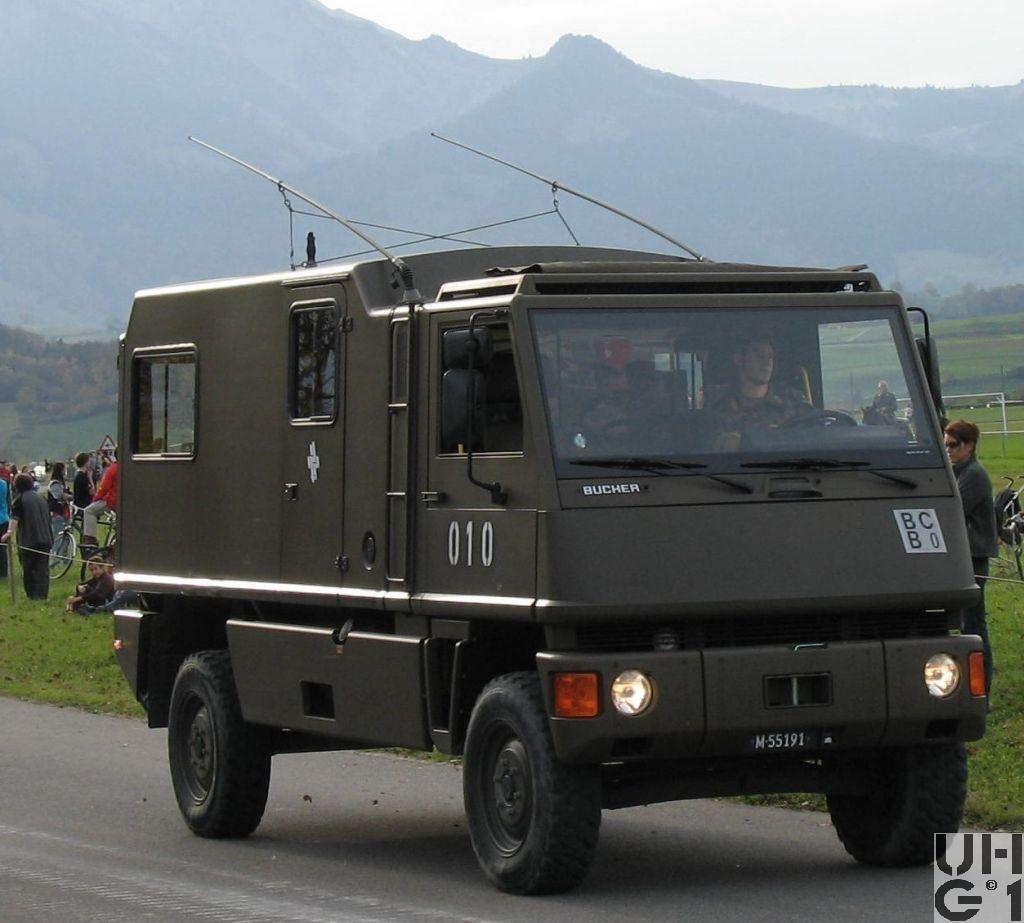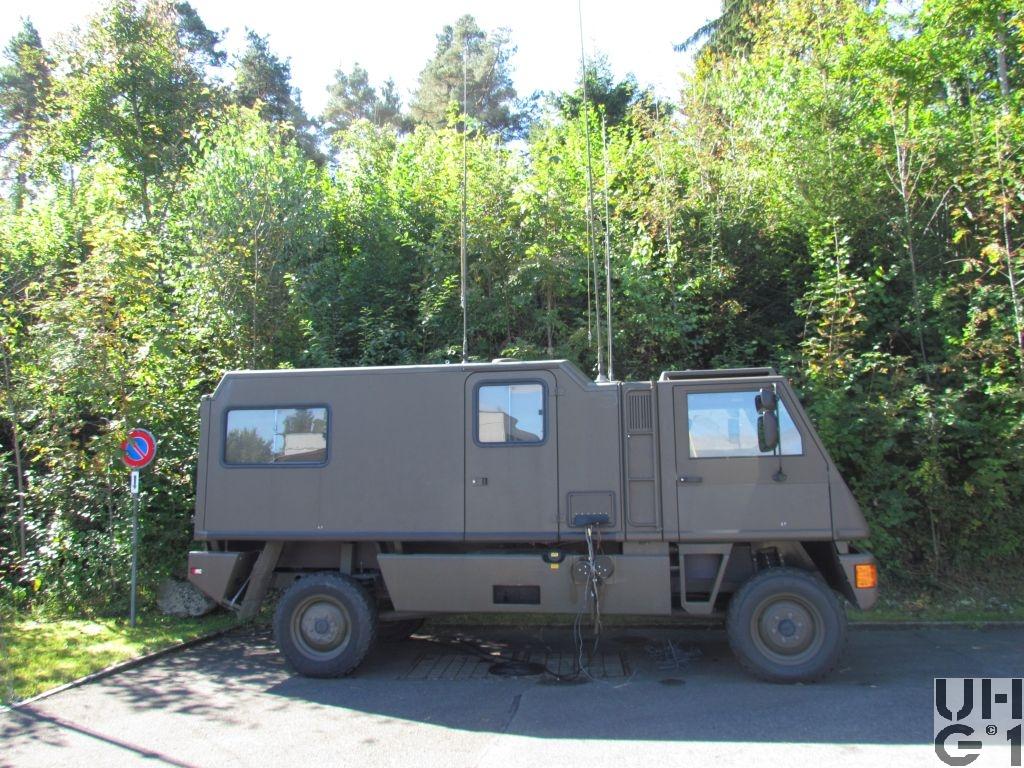 | Getriebe | Hauptgetriebe Mercedes Benz Typ W 4 A 028 4 Gang Automat hydraulisch gesteuert 4 Vorwärtsgänge 1 Rückwärtsgang Übersetzung 1. Gang 3,871:1 2. Gang 2,247:1 3. Gang 1,436:1 4. Gang 1,000:1 R-Gang 5,586:1 Verteilergetriebe Bucher Typ V-2GS-TD 15 Synchronisiertes 2- Stufen Verteilergetriebe mit Torsen Längsdifferential 1 Stufe Strassenstufe 1 Stufe Berg- / Geländestufe Übersetzung 0,71:1 Strassengang 1,42:1 Geländegang |