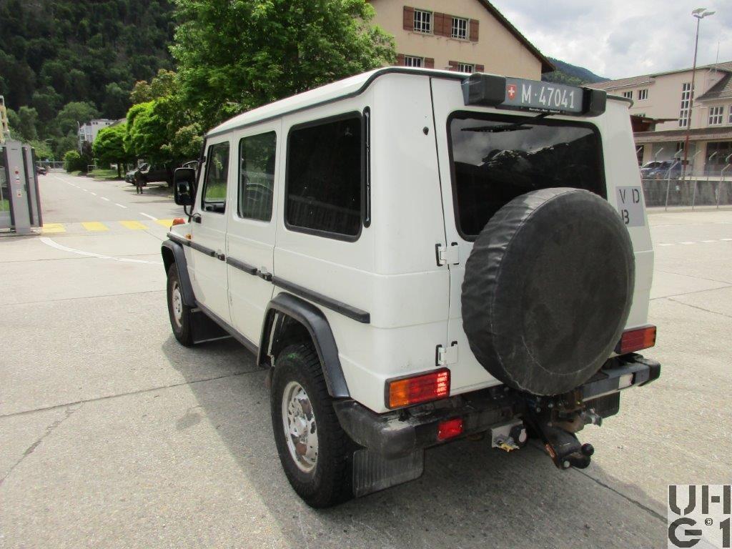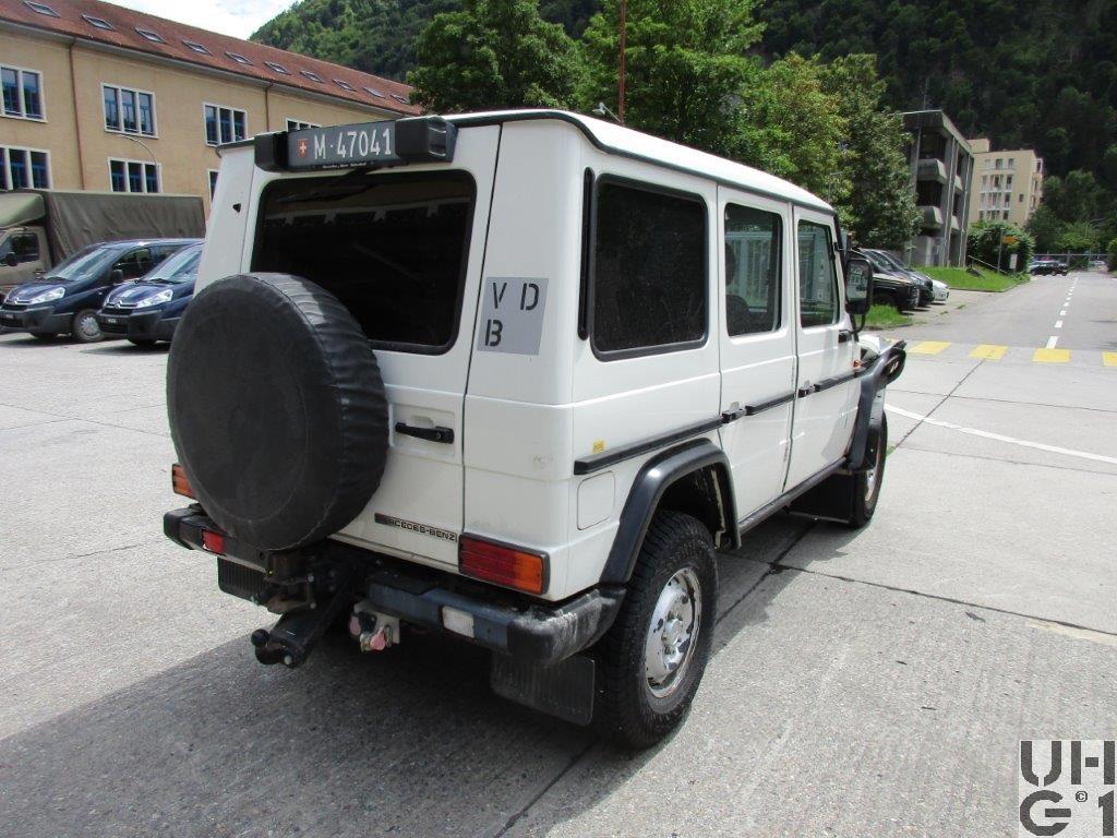 | Getriebe | Hauptgetriebe Hersteller Mercedes Benz Typ W5 A 580 5 Gang Automat Übersetzung 1. Gang 3,60:1 2. Gang 2,19:1 3. Gang 1,41:1 4. Gang 1,00:1 5. Gang 0,83:1 R. Gang 3,17:1 Verteilergetriebe Hersteller Mercedes Benz Typ VG 150E-3W Synchronisiertes 3-Wellen 2-Gang Getriebe Untersetzungen Strassengang 0,870:1 Geländegang 2,158:1 Zentraldifferential Planetenausgleich Drehmomentverteilung: 50% vorne 50% hinten |