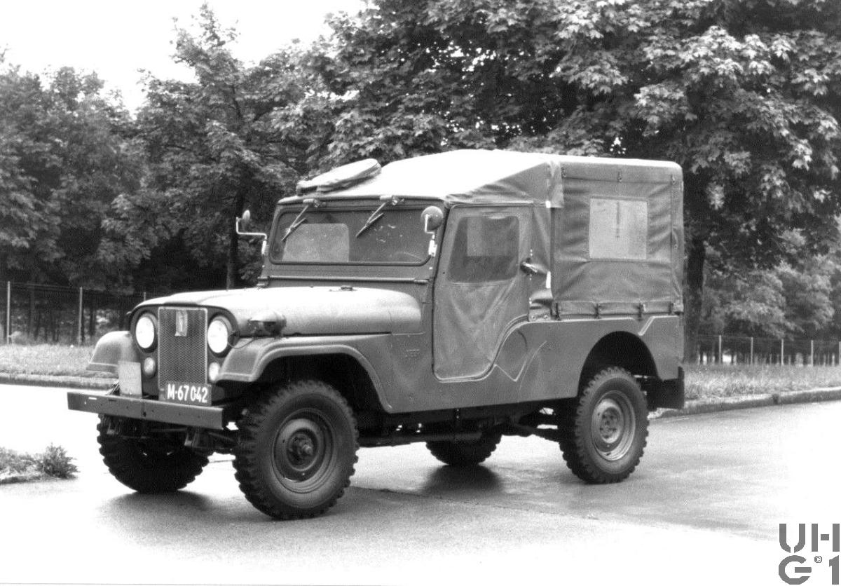 | Getriebe | Hauptgetriebe Hersteller Warner Typ T-90 Mechanisches Schubrad Wechselgetriebe 2. und 3. Gang synchronisiert 3 Vorwärtsgänge 1 Rückwärtsgang Stockschaltung Übersetzung 1. Gang 2,79:1 2. Gang 1,55:1 3. Gang 1,00:1 R. Gang 3,79:1 Verteilergetriebe Hersteller Spicer Typ T-18 Mechanisches Reduktions- und Verteilergetriebe mit 2 Schaltstufen für Strassen- und Geländegang Vorderradantrieb ausschaltbar Untersetzung 1,00:1 Strassengang 2,46:1 Geländegang Bedienung der Schaltung 1 Schalthebel für Hauptgetriebe 1 Schalthebel für Vorderradantrieb 1 Schalthebel für Geländegang |