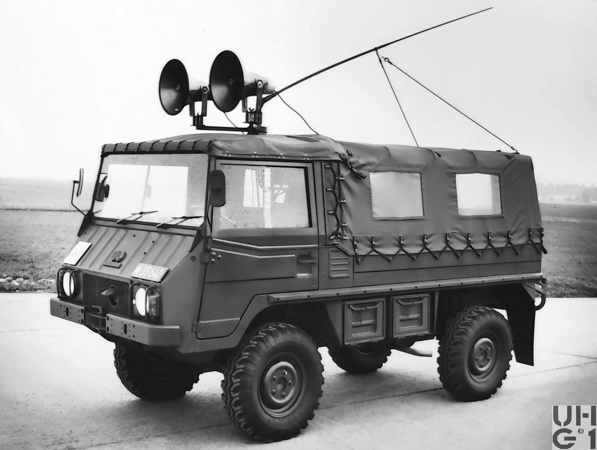 | Getriebe | Hauptgetriebe Hersteller ZF Typ S 5-18/3 Mechanisches Zahnrad Wechselgetriebe Sämtliche Vorwärtsgänge sperrsynchronisiert Rückwärtsgang mit Klauenkupplung 5 Vorwärtsgänge 1 Rückwärtsgang Stockschaltung Übersetzung 1. Gang 5,33:1 2. Gang 3,24:1 3. Gang 2,04:1 4. Gang 1,30:1 5. Gang 1,00:1 R. Gang 5,47:1 Verteilergetriebe Mechanisches Reduktions- und Verteilergetriebe am zentralen Tragrohr und am Hinterachsantrieb angeflanscht 2 sperrsynchronisierte Gänge Übersetzung 0,88:1 Strassengang 1,69:1 Geländegang Bedienung der Schaltung Schalthebel Weiss: Hauptgetriebe Schalthebel Schwarz: Gruppengetriebe Je 1 Hebel für: Vorderradantrieb Differentialsperre hinten Differentialhebel vorne |
