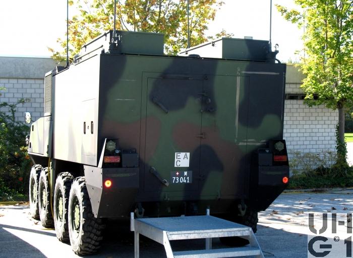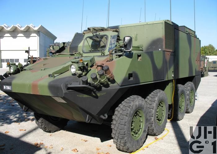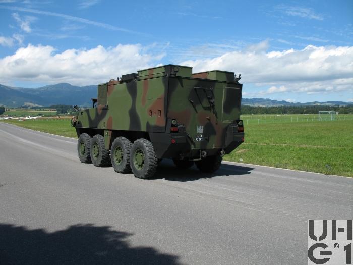 | Getriebe | 1 Hauptgetriebe Hersteller ZF Typ 7HP602 Gänge 7 Vorwärtsgänge 1 Rückwärtsgang Bauart Lastschalt Planetengetriebe mit hydraulisch betätigten Kupplungen Drehmomentwandler mit Überbrückungskupplung und Retarder 1 Verteilergetriebe Hersteller GDELS - Mowag Bauart Gerade verzahntes Stirnradgetriebe mit formschlüssiger Zahnradsperre Notlenkpumpenantrieb und reguliertem Kühlsystem 2 Ausgleichsgetriebe 1. + 2. Achse Hersteller GDELS - Mowag Konfiguration Selbstsperrdifferential mit Schaltzylinder Sperre 45% 2 Ausgleichsgetriebe 3. + 4. Achse Hersteller GDELS - Mowag Konfiguration Selbstsperrdifferential mit Arretierstange Sperre 45% 4 Radantriebe Hersteller GDELS - Mowag Konfiguration Planetengetriebe |