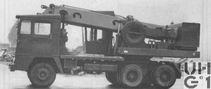 | Bemerkungen | M+Nummern M+9960 bis M+9962 Baggeraufbau Motor: AEC Typ AV 505 6 Zylinder Reihenmotor 116 mm Bohrung 130 mm Hub 8'226 ccm Hubraum 106 PS bei 1650 U/min 165 Liter Dieseltank Zubehör Standartausrüstung (Werkzeuge pro Bagger) Baggerkübel 150 Liter 53 cm Breite 210 kg Gewicht Baggerkübel 380 Liter 97,5 cm Breite 368 kg Gewicht Räumkübel 480 Liter 152 cm Breite 300 kg Gewicht Reisshaken 156 kg Gewicht Sonderausrüstung (Zusatzwerkzeuge) Für Sonderaufträge können bei der KMV folgende Zusatzwerkzeuge angefordert werden: Ausleger Verlängerungsstück 120 cm Länge 173 kg Gewicht Ausleger Verlängerungsstück 240 cm 230 kg Gewicht Planierblatt 244 cm Breite 203 kg Gewicht Grabenkübel 110 Liter 38 cm Breite 272 kg Gewicht Ladeschaufel 380 Liter 95 cm Breite 220 kg Gewicht |