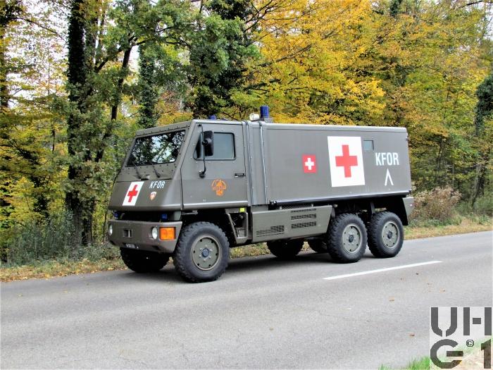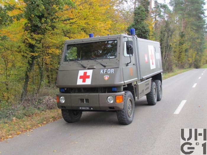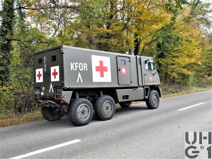 | Getriebe | Hauptgetriebe Hersteller Mercedes Benz Typ W 4 A 028 4 Gang Automat hydraulisch gesteuert 4 Vorwärtsgänge 1 Rückwärtsgang Übersetzung 1. Gang 3,871:1 2. Gang 2,247:1 3. Gang 1,436:1 4. Gang 1,000:1 R. Gang 5,586:1 Verteilergetriebe Hersteller Bucher Typ V-2GS-TD 15 Synchronisiertes 2- Stufen Verteilergetriebe mit Torsen Längsdifferential 1 Stufe Strassenstufe 1 Stufe Berg- / Geländestufe Übersetzung 0,71:1 Strassengang 1,42:1 Geländegang |