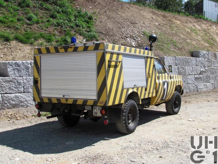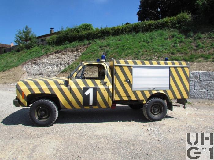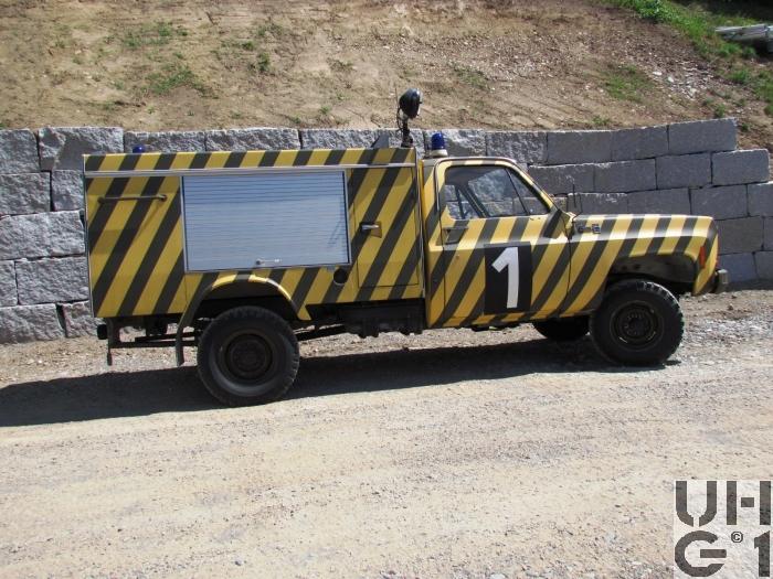 | Bemerkungen | Aufbau Brändle Wil K+W Thun Beschreibung Das Fahrzeug ist ein Rettungs- und Löschwagen mit einer kombinierten Pulver / LIGHT-WATER Löschanlage P200 / LW190 Die komplette Löschanlage ist auf einem Rahmen aufgebaut und im Wagen befestigt Löschanlage 2'270 mm Länge 970 mm Breite 1'120 mm Höhe 190 Liter LIGHT-WATER 200 kg Natriumbikarbonatspulver 855 kg Gewicht Einsatzbereit 30 m Länge der Druckschläuche 90 Sekunden Wirksame Spritzdauer 3 bis 15 m Wirkungsbereich |
