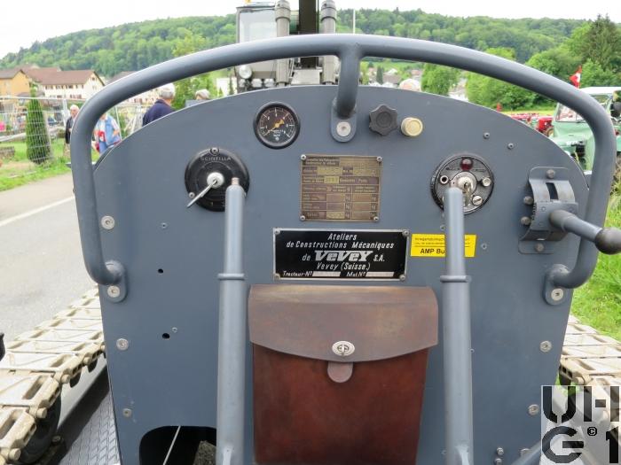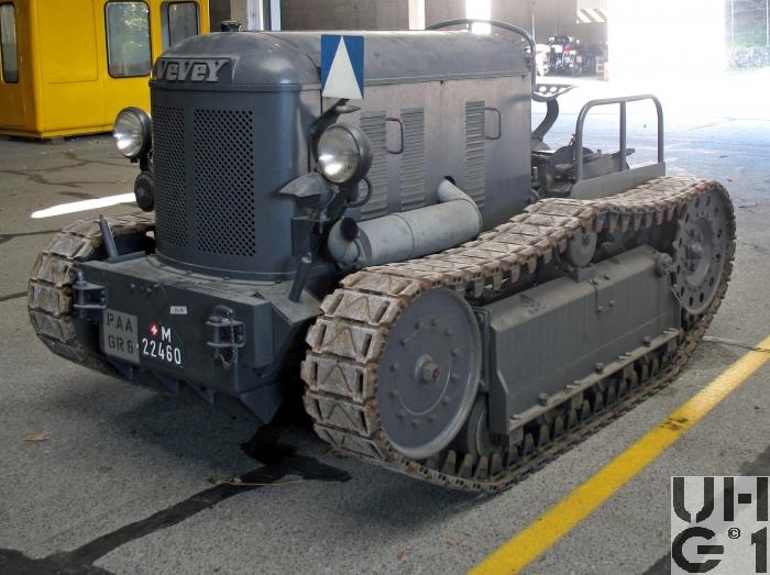 | Bemerkungen | 1943 wurde von der Kriegstechnischen Abteilung Bern 10 Stück Raupenschlepper bei Vevey bestellt. Vevey war mit dem Typ MC 2 unter 5 Konkurrenten in einem harten Vergleichstest als Sieger hervorgegangen. Die Schlepper wurden vor allem auf folgenden Flugplätzen eingesetzt: Interlaken, Sion, Luzern, Dübendorf, Payerne, Emmenbrücke, Osognau und Thun. Gebraucht wurden sie hauptsächlich zur Bergung von ausländischen Kriegsflugzeugen die zur Landung gezwungen wurden, dann aber oft über die kurzen Schweizer Pisten hinaus schlitterten. Die Fahrzeuge kamen aber auch zum Einsatz um die Schweizer Morane Flugzeuge auf die Piste zu schleppen. |