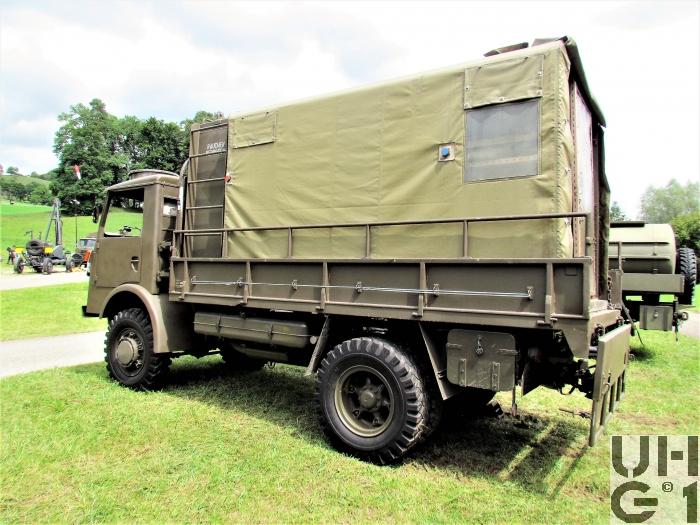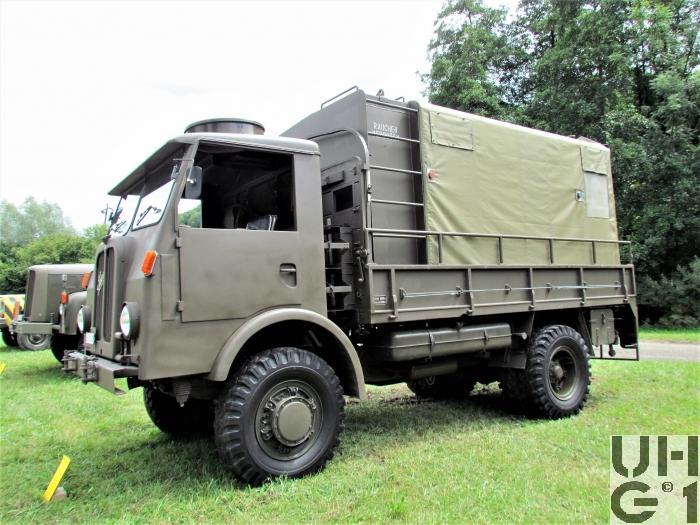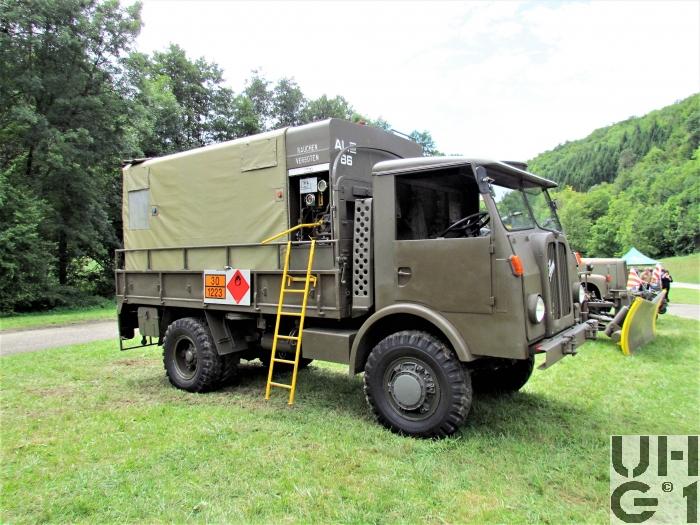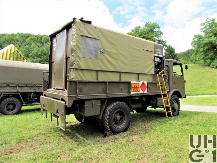 | Bemerkungen | Einsatz Das Fahrzeug wird bei den Leichtfliegerstaffeln auf permanenten und provisorischen Flugplätzen eingesetzt. Der Container ist für den Helikopter Alouette II Inhalt Tank: 1'700 Liter Flugpetrol Inhalt Behälter: Gurten, Netze, Lastenmaterial, Wartungsmaterial |