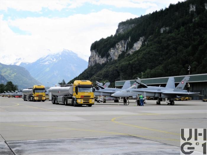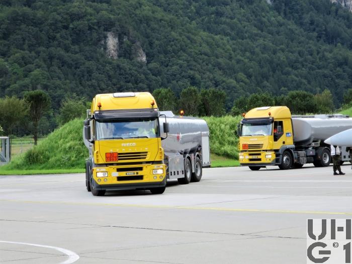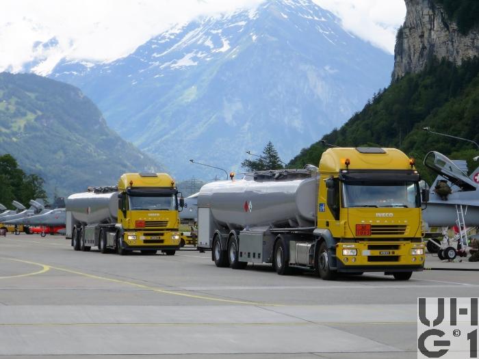 Bemerkungen | Lieferanten Sattelschlepper Iveco Magirus AG, D-89079 Ulm Hydraulik und Zubehör KASAG, CH-3550 Langnau Grundrahmen Auflieger E. Frech-Hoch AG, CH 4450 Sissach Tankaufbau Kasag AG, CH-3550 Langnau i.E. Tankaufbau Atcomex S.A., B-9220 Hamme (Konsortium) Sattelanhänger ATCOMEX Typ RS 31/20B/1C30 Mil Bezeichnung Tanksattel Anh Lfz Bet 30'000 l 2-achs Anzahl 13 Stück 1 Stück über PEB 1999, Ablieferung 2000 12 Stück über RP 2002, Ablieferung 04 - 06 Aufbau Tankaufbau für Treibstoffe Betankungseinrichtung für das gleichzeitige Betanken von 2 Flugzeugen Abgabemenge bis 2 x 900 Liter/Minute Masse 10'170 mm Länge 2'550 mm Breite 3'180 mm Höhe 5'560 mm / 1'810 mm Radstand 8'800 kg Leergewicht 22'700 kg Nutzlast 31'500 kg Gesamtgewicht 30'000 Liter Tankvolumen Starrachsen Luftfederung Scheibenbremsen Bereifung 425/65 R 22,5 Einfachbereifung 2. Achse mit Nachlauflenkung |