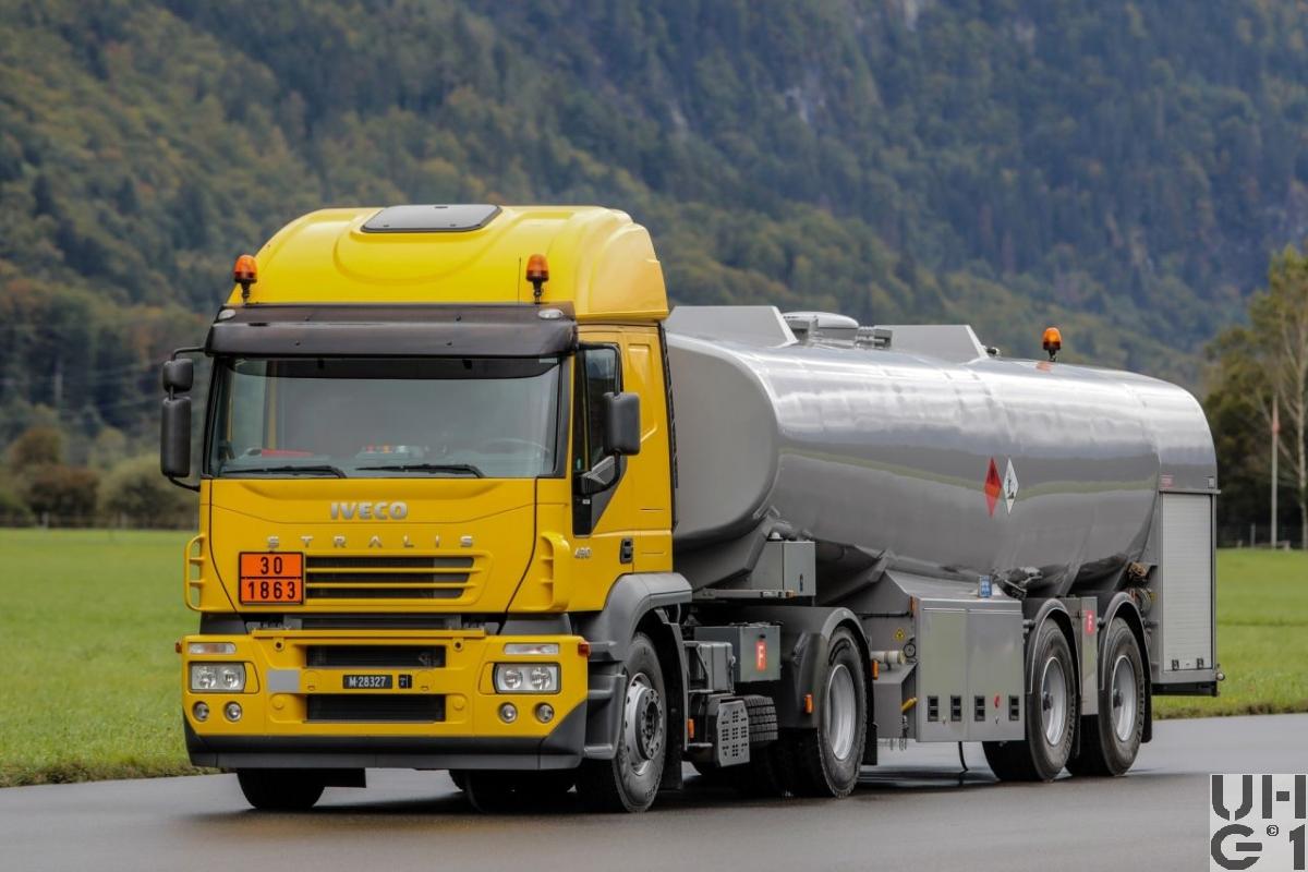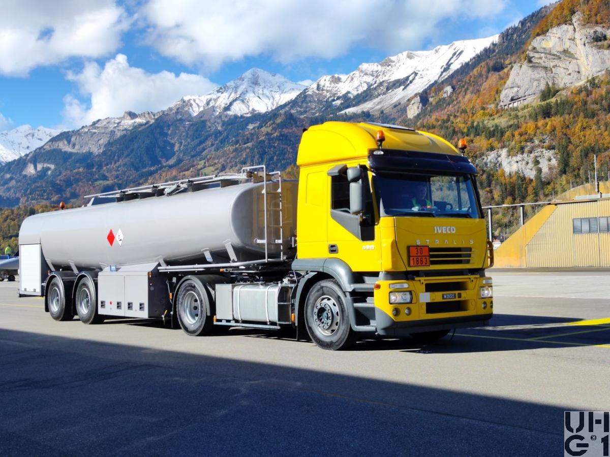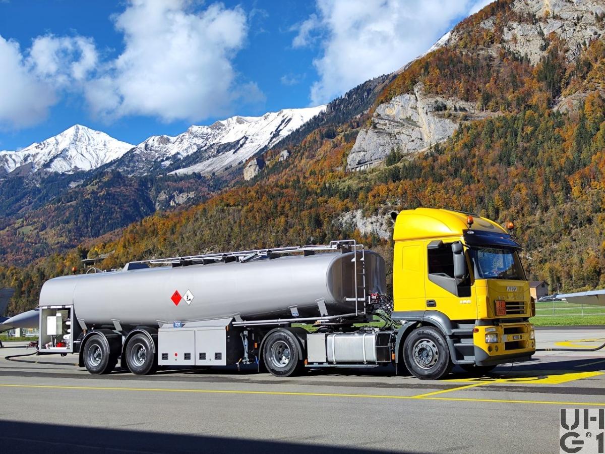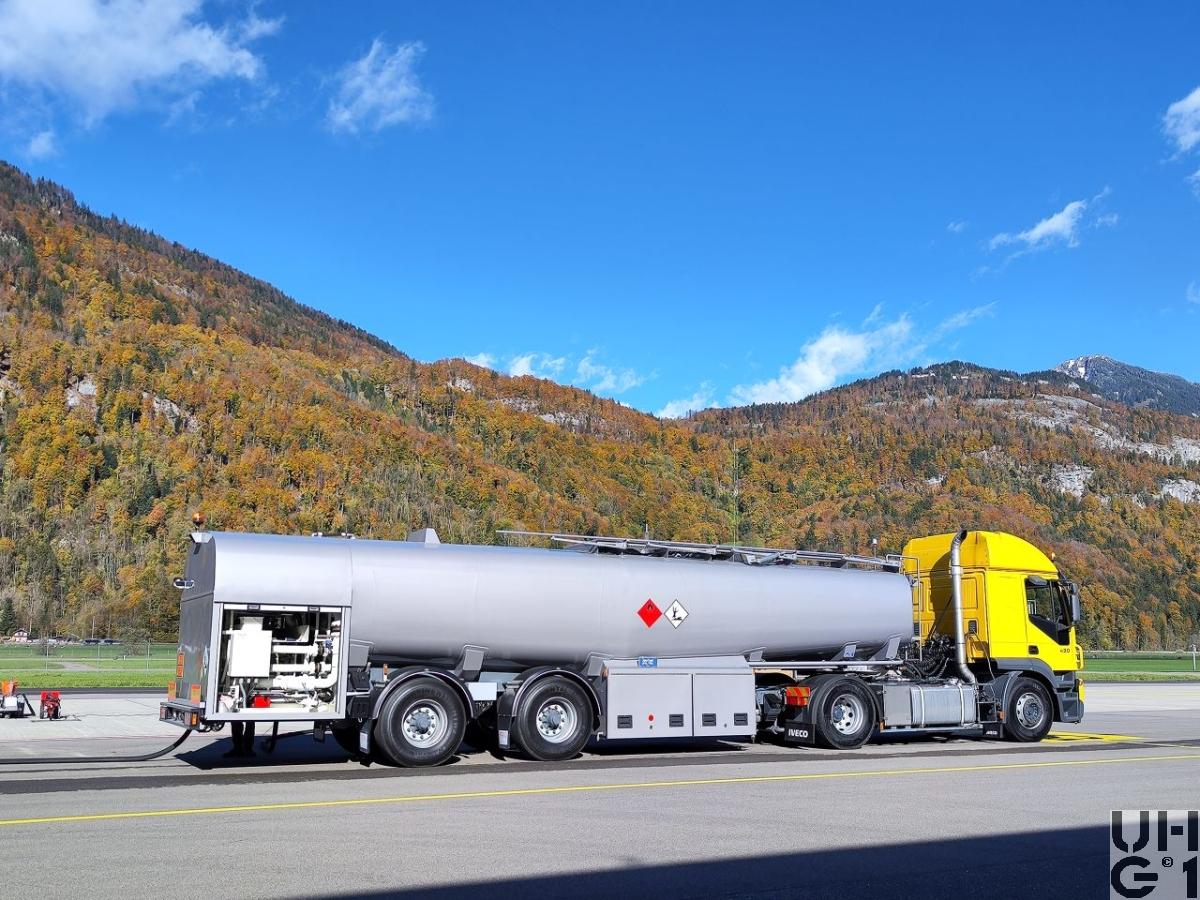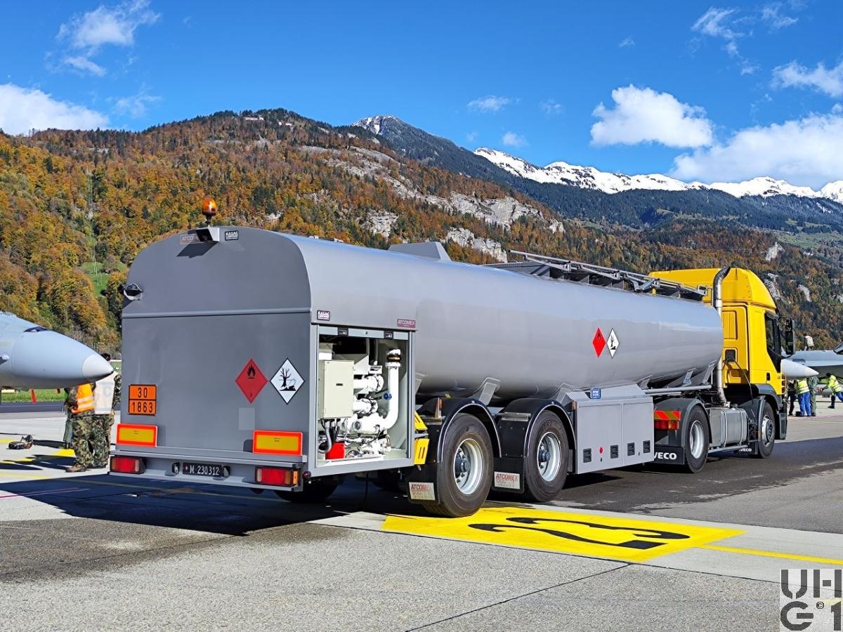 | Bemerkungen | Lieferanten Sattelschlepper Iveco Magirus AG, D-89079 Ulm Hydraulik und Zubehör KASAG, CH-3550 Langnau Grundrahmen Auflieger E. Frech-Hoch AG, CH 4450 Sissach Tankaufbau Kasag AG, CH-3550 Langnau i.E. Tankaufbau Atcomex S.A., B-9220 Hamme (Konsortium) Sattelanhänger ATCOMEX Typ RS 31/20B/1C30 Mil Bezeichnung Tanksattel Anh Lfz Bet 30'000 l 2-Achs Anzahl 13 Stück 1 Stück über PEB 1999, Ablieferung 2000 12 Stück über RP 2002, Ablieferung 2004 - 2006 Aufbau Tankaufbau für Treibstoffe Betankungseinrichtung für das gleichzeitige Betanken von 2 Flugzeugen Abgabemenge bis 2 x 900 Liter/Minute Masse 10'170 mm Länge 2'550 mm Breite 3'180 mm Höhe 5'560 mm / 1'810 mm Radstand 8'800 kg Leergewicht 22'700 kg Nutzlast 31'500 kg Gesamtgewicht 30'000 Liter Tankvolumen Starrachsen Luftfederung Scheibenbremsen Bereifung 425/65 R 22,5 Einfachbereifung 2. Achse mit Nachlauflenkung |