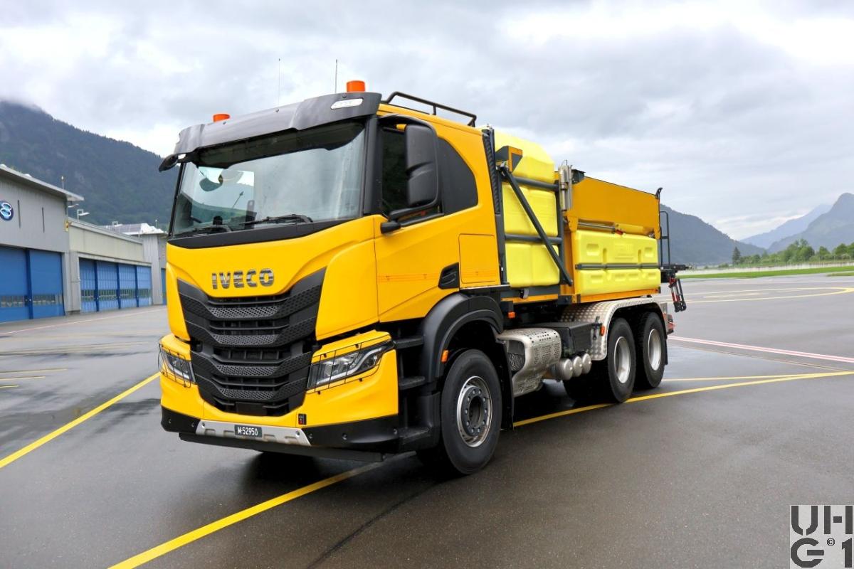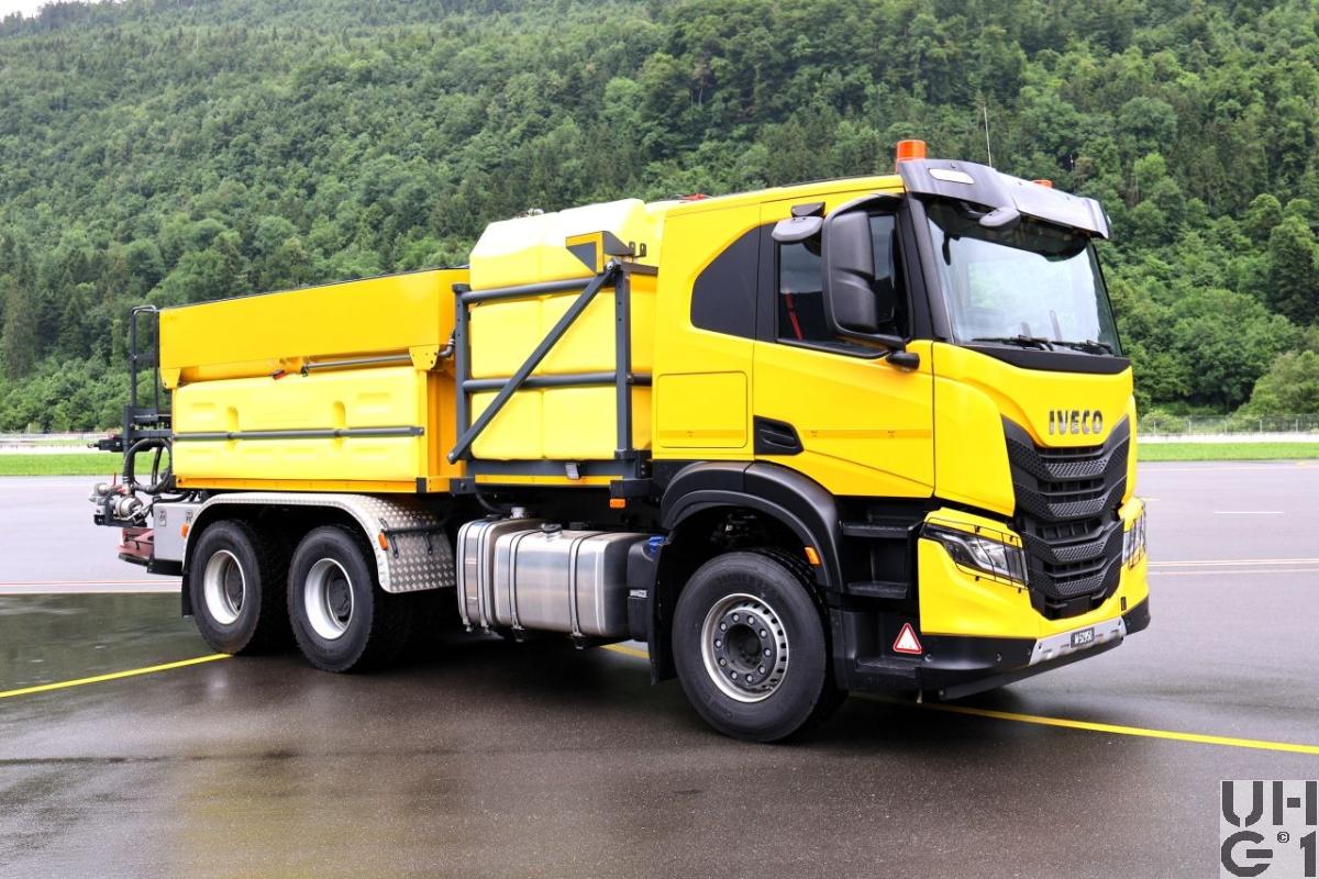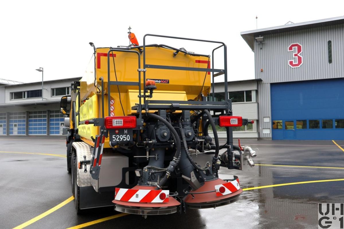 | Bemerkungen | Aufbau: Fester Aufbau für Feststoff (7 m³) Fester Aufbau für Flüssigenteisungsmittel (6'660 Liter) Ausgabe über zwei Drehteller am Heck Streubreite bis 14 m |
