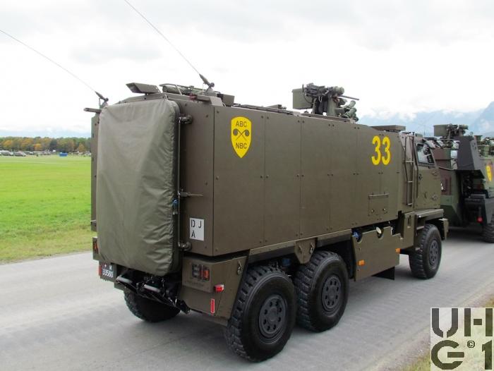 | Bemerkungen | Einsatz In den 4 ABC Abwehrkompanien des ABC Abwehrbataillon System Es werden 4 mobile ABC Systeme beschaft Ein System besteht aus 3 Fahrzeugen, A-, B-, C-Nachweisfahrzeug Bewaffnung Waffenstation mit 12,7 mm Mg 07 Hersteller Kongsberg Typ RWS Armasuisse 360° Seitenrichtbereich Waffenstation 60° Max. Höhenrichtwinkel der Waffe -20° Min. Höhenrichtwinkel der Waffe 773 mm Höhe über alles 748 mm Höhe ohne Munitionskiste 740 mm Breite ohne Nebelwerfer 1'055 mm Breite mit Nebelwerfer 1'608 mm Höhe mit aufgerichtetem Lauf 260 kg Waffenstation voll geladen 144 kg Waffenstation ohne Nebelwerfer 39 kg Munitionskiste mit 200 Schuss 12,7 mm Munition 12 kg Feuerleitgerät 1,5 kg Richtgriff 7,6 cm Nbwanl 87 RWS Kongberg 2x4 Stück 7,6 cm Nebelwerfer 87 Munition 7,6 cm Nb Pat 95 el Zü 7,6 cm U NB Pat 97 el Zü 7,6 cm Manip NB Pat 95 1 Stück 12,7 mm Mg 2007 |