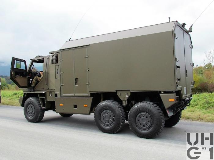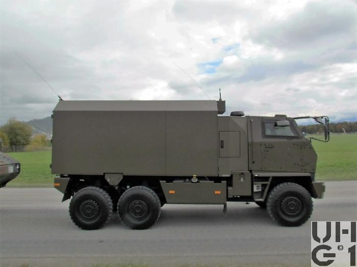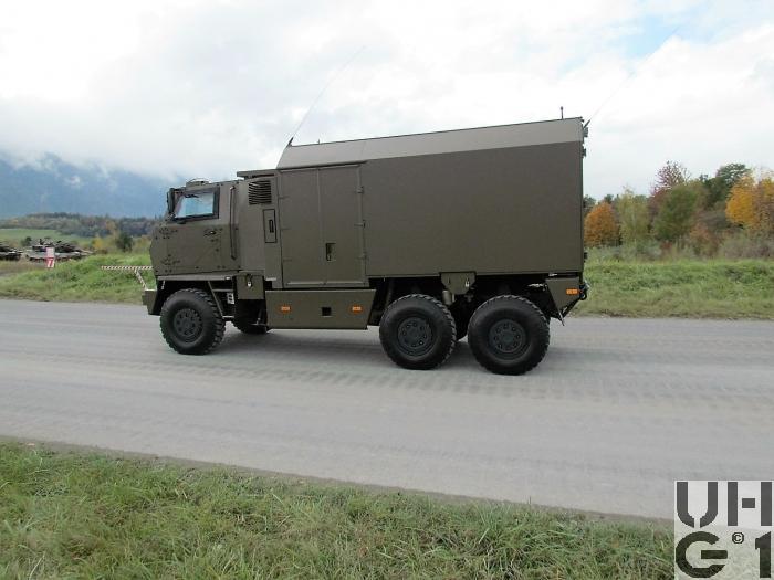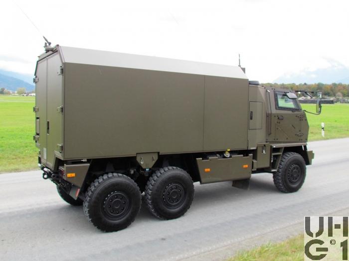 | Achsen | Vorne De-Dion Starrachse Längslenker Querstabilisierung mit Wattgestänge Federbein Gummi-Federelement Schlauchlose Mehrzweckreifen Elektro-pneumatische Reifendruckregelanlage CTIS Felgen 11.00 - 20 zweigeteilte geschmiedete Aluminium Felge Bereifung Pirelli PS 22 Pista 335/80R20 149 K Einfachbereifung Hinten De-Dion Starrachse Längslenker Querstabilisierung mit Wattgestänge Zwei Schraubenfedern Ein hydraulischer Teleskopstossdämpfer Gummifederelemente Schlauchlose Mehrzweckreifen Elektro-pneumatische Reifendruckregelanlage CTIS Felgen 11.00 - 20 zweigeteilte geschmiedete Aluminium Felge Bereifung Pirelli PS 22 Pista 335/80R20 149 K MPT Einfachbereifung |