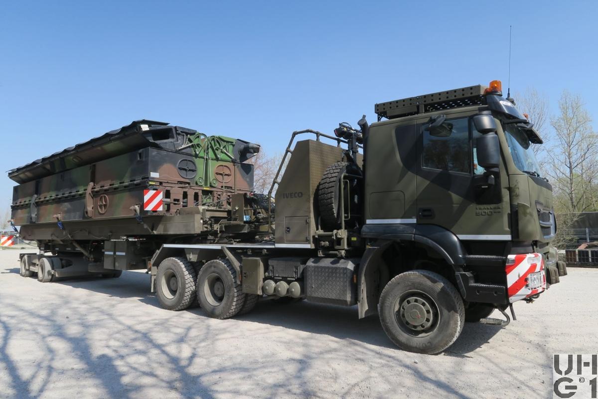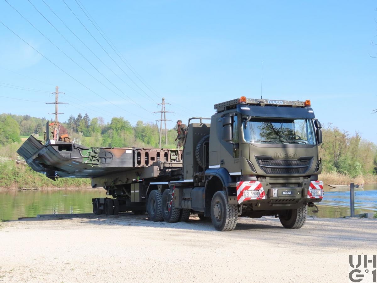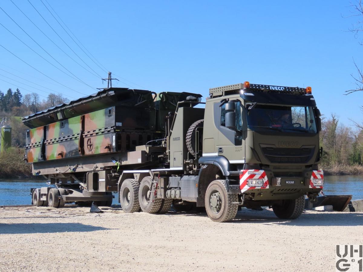 | Bemerkungen | Lieferanten Fahrgestell IVECO Magirus AG Aufbau Doll Fahrzeugbau Schwimmbrücken Sattelanhänger 95/15, 22t, 2-Achsig 17'460 mm Länge 3'600 mm Breite 4'000 mm Höhe 1'500 mm Sattelkupplungshöhe 21'024 kg Gewicht Sattelanhänger mit Modul 34'624 kg Gesamtzuggewicht mit Modul 2x10'000 kg Max. Achslast Aufbau Sattelanhänger zum Transport der Schwimmbrücke 95 Anzahl 81 Sattelanhänger für Modul und Rampe Beschaffung Über Rp 2016 |