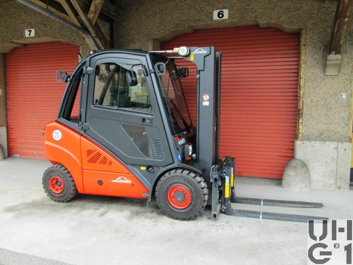 | Höhe | 3'840 mm Fahrzeug mit Hubgerüst ausgefahren 2'264 mm Fahrzeug mit Hubgerüst eingefahren 2'210 mm Fahrzeug über Kabine 1'105 mm Sitzhöhe 698 mm Kupplungshöhe |