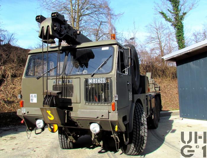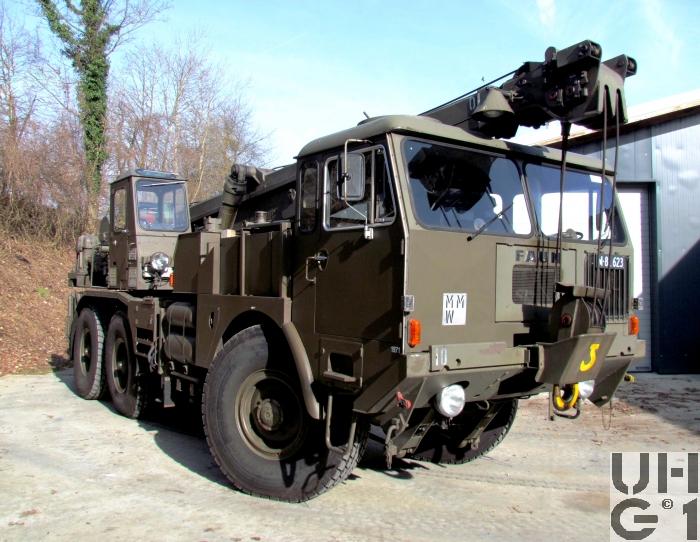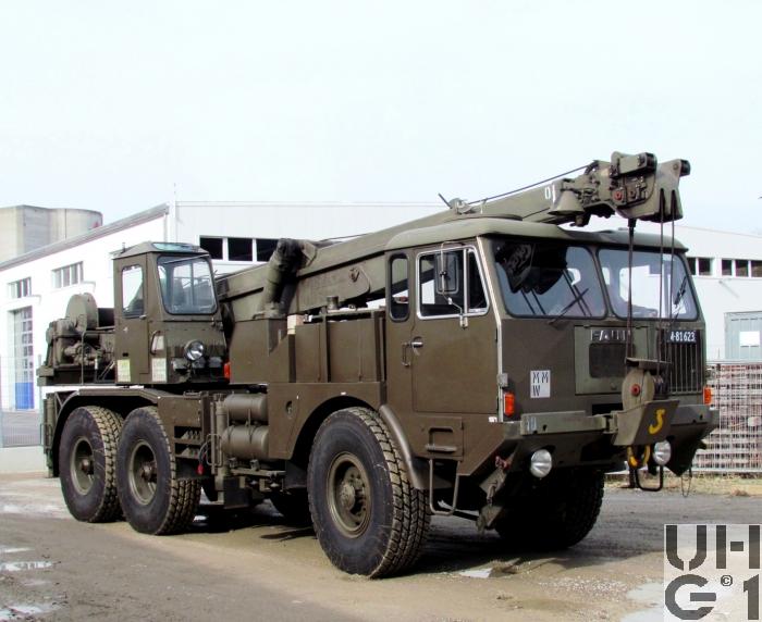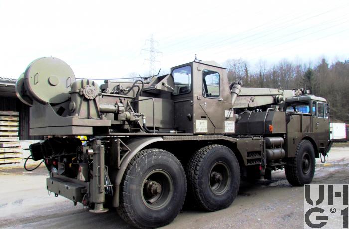 | Bemerkungen | Einsatz Dienstkompanien in den Panzerbataillonen Dienstkompanien in den Panzerhaubitzenbataillonen Auf Flugplätzen Hebekran Marke MFL Angetrieben mit Hauptmotor des Fahrzeuges 1 Kranausleger 360° schwenkbar in Länge und Höhe verstellbar Hebekraft 15'000 kg je nach Auslegerstellung und Abstützung Hubseil 16 mm Durchmesser 80'000 mm Länge Lasthakenhöhe 1,6 m bis max. 14 m Höhe |