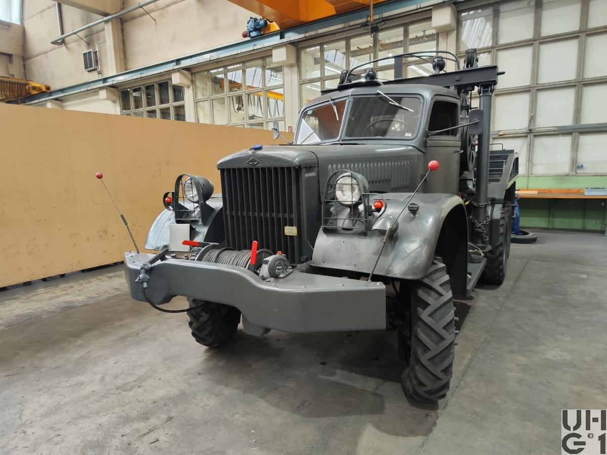 | Bemerkungen | M+Nummern M+81500 bis M+81528 Abschleppwagen Strassenpolizei Kompanien M+81581 bis M+81603 Kranwagen Reparaturformationen Panzertruppen Modellunterschiede Modell 969 hat ziviele Instrumente Modell 969A ab Oktober/November 1941 hat Militärische Einheitsinstrumente Ab Juni/Juli 1943 wurden nur noch offene Kabinen mit Planenverdeck hergestellt Bergekran Holmes Modell W-45 HD 2 Kranausleger vertikal und horizontal von Hand schwenkbar Hebekraft 3'000 kg je Ausleger Seitlich nur mit Abstützung Seillänge 60'960 mm Windenkabel 12'190 mm Auslegerkabel Seildurchmesser 12,7 mm Windenkabel 12,7 mm Auslegerkabel Schwenkbereich Horizontal ca. 110° Antrieb Vom Verteilergetriebe über Kette auf Krangetriebe |