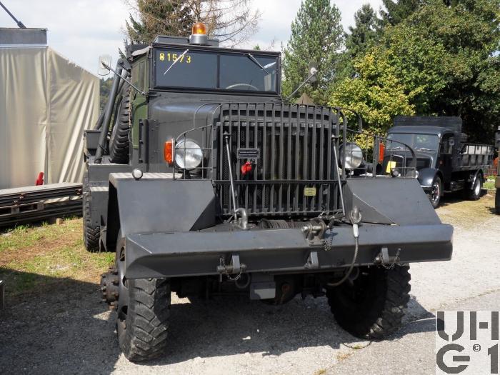 Getriebe | Hauptgetriebe Hersteller Fuller Mechanisches Schubrad Wechselgetriebe 5 Vorwärtsgänge 1 Rückwärtsgang Stockschaltung Übersetzung 1. Gang 7,07:1 2. Gang 3,50:1 3. Gang 1,72:1 4. Gang 1,00:1 5. Gang 0,77:1 R. Gang 7,11:1 Verteilergetriebe Hersteller Timken Mechanisches Reduktions- und Verteilergetriebe mit 2 Schaltstufen für Strassen- und Geländegang Vorderradantrieb ausschaltbar Übersetzung 1,00:1 Strassengang 2,55:1 Geländegang Zapfwelle für Kran- und Seilwindenantrieb Bedienung der Schaltung Schalthebel Weiss Hauptgetriebe Schalthebel Rot Strassen- und Geländegang Schalthebel Grün Vorderradantrieb Schalthebel Blau Zapfwelle (Kran- und Seilwinde) |