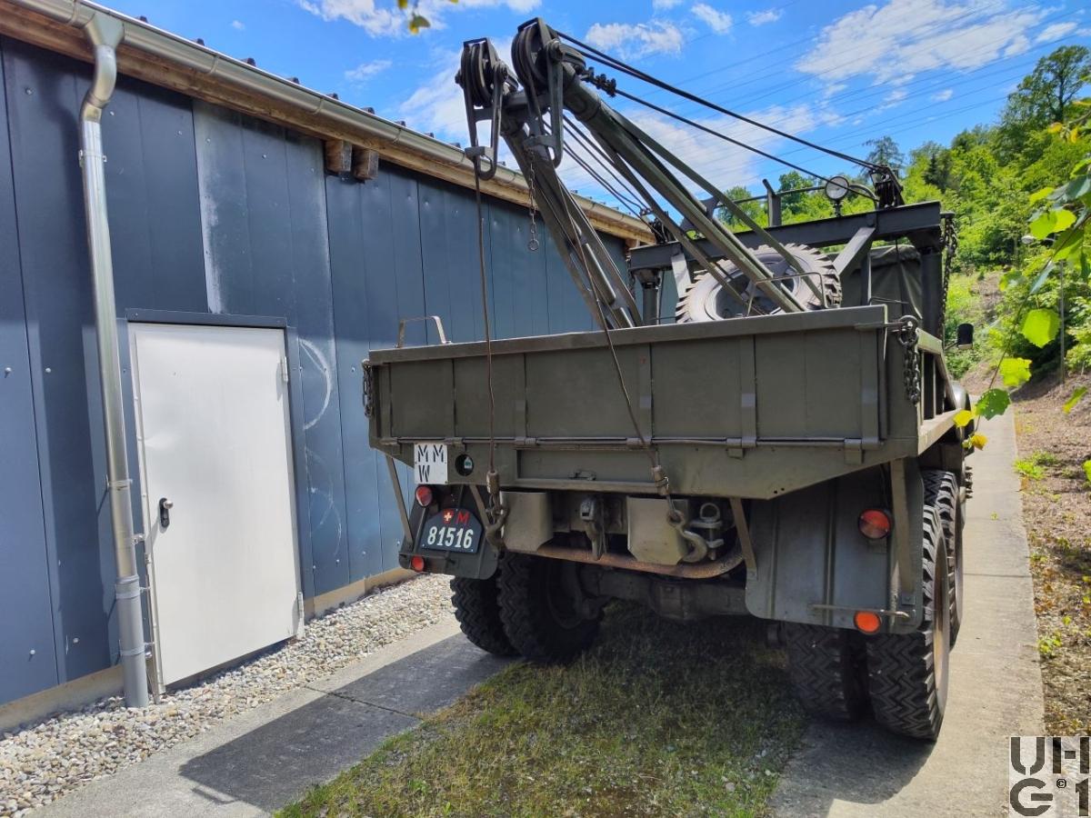 | Bemerkungen | M+Nummern M+81500 bis M+81528 Abschleppwagen Strassenpolizei Kompanien M+81581 bis M+81603 Kranwagen Reparaturformationen Panzertruppen Modellunterschiede Modell 969 hat ziviele Instrumente Modell 969A ab Oktober/November 1941 hat Militärische Einheitsinstrumente Ab Juni/Juli 1943 wurden nur noch offene Kabinen mit Planenverdeck hergestellt Bergekran Holmes Modell W-45 HD 2 Kranausleger vertikal und horizontal von Hand schwenkbar Hebekraft 3'000 kg je Ausleger Seitlich nur mit Abstützung Seillänge 60'960 mm Windenkabel 12'190 mm Auslegerkabel Seildurchmesser 12,7 mm Windenkabel 12,7 mm Auslegerkabel Schwenkbereich Horizontal ca. 110° Antrieb Vom Verteilergetriebe über Kette auf Krangetriebe |
