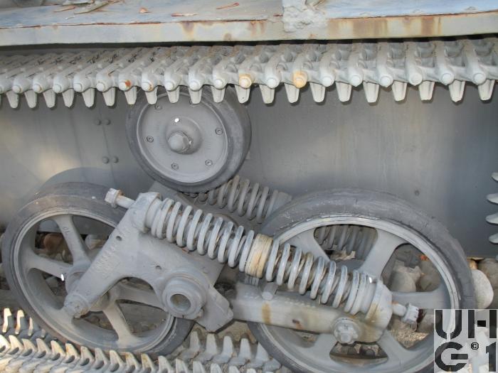 | Fahrwerk | Pro Seite 1 Antriebsrad vorne 4 Spiralfedern 2 Schwingarme 4 Laufräder 2 Tragrollen 1 Spannrad hinten 1 Scharnierraupe |