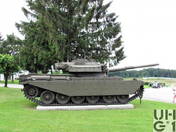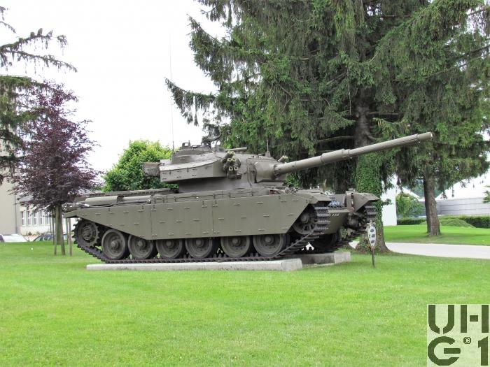 | Bemerkungen | Einteilung Pz Abt 11 von 1960 bis 1964 Pz Abt 15 von 1961 bis 1964 Pz Bat 1 von 1981 bis 1990 Pz Bat 11 von 1965 bis 1973 Pz Bat 15 von 1965 bis 1973 Pz Bat 21 von 1974 bis 1988 Pz Bat 22 von 1974 bis 1980 Unterschiede zum Panzer 55 Panzerschürzen mit vielen Bügeln Heckplatte ohne Durchbrechung Keine Wattbleche Getrieberaumdeckel durchbrochen 3 Treibstoffbehälter Treibstoffumstellhahn in der Schottwand, liegend Turmboden dreht mit Bedienung Hilfsmotor im Fahrerraum Aufmunitionierung durch Öffnung in der Wanne links Batterien im Kasten hinter Fahrer Fester Zughacken am Heck Kühlluftaustritt hinten nach oben Lampenverkabelung auf Bugplatte oben sichtbar Antennensockel links vor Turmdach BSF Gewinde für Motor und Getriebe UNF Gewinde für Wanne, Fahrwerk und Turm Kontrollschild hinten, oben Das hier abgebildete Fahrzeug steht auf einem Betonsockel auf dem Waffenplatz Bure. Noch mehr Details zum Fahrzeug finden Sie im Buch Die Panzer der Schweizer Armee seit 1921 https://militaerfahrzeuge.ch/produkt_13.html |