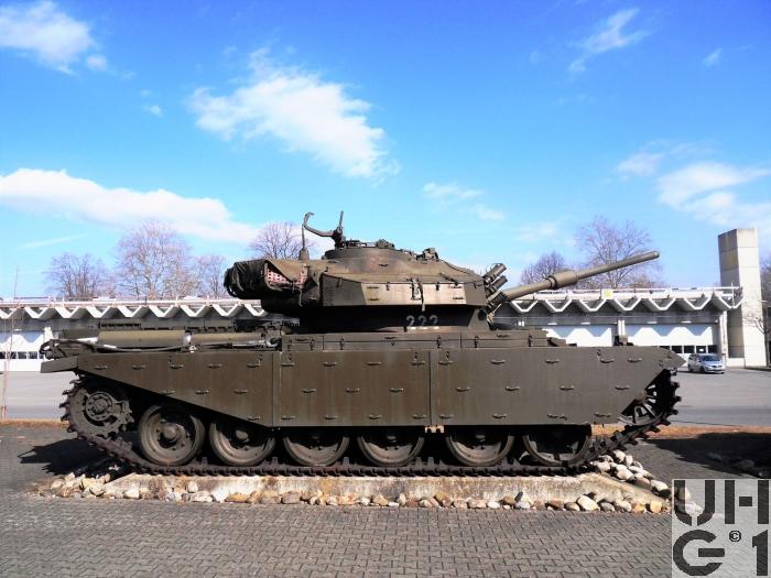 | Bemerkungen | Einteilung Pz Abt 11 von 1960 bis 1964 Pz Abt 15 von 1961 bis 1964 Pz Bat 1 von 1981 bis 1990 Pz Bat 11 von 1965 bis 1973 Pz Bat 15 von 1965 bis 1973 Pz Bat 21 von 1974 bis 1988 Pz Bat 22 von 1974 bis 1980 Unterschiede zum Panzer 55 Panzerschürzen mit vielen Bügeln Heckplatte ohne Durchbrechung Keine Wattbleche Getrieberaumdeckel durchbrochen 3 Treibstoffbehälter Treibstoffumstellhahn in der Schottwand, liegend Turmboden dreht mit Bedienung Hilfsmotor im Fahrerraum Aufmunitionierung durch Öffnung in der Wanne links Batterien im Kasten hinter Fahrer Fester Zughacken am Heck Kühlluftaustritt hinten nach oben Lampenverkabelung auf Bugplatte oben sichtbar Antennensockel links vor Turmdach BSF Gewinde für Motor und Getriebe UNF Gewinde für Wanne, Fahrwerk und Turm Kontrollschild hinten, oben Noch mehr Details zum Fahrzeug finden Sie im Buch Die Panzer der Schweizer Armee seit 1921 https://militaerfahrzeuge.ch/produkt_13.html |