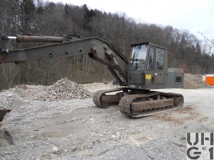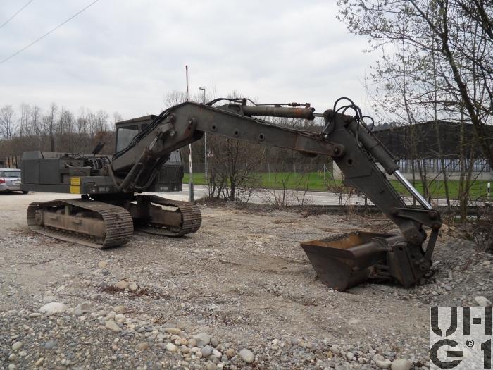 | Getriebe | Planeten Stirnradgetriebe, das Fahrwerk verfügt über einen hydrostatischen Antrieb, jede Fahrwerkseite ist mit einem schnellaufenden Axialkolbenölmotor ausgerüstet, durch den Antrieb über leistungsgeregelte Pumpen ergibt sich automatisch eine stufenlose Geschwindigkeitsregelung. |