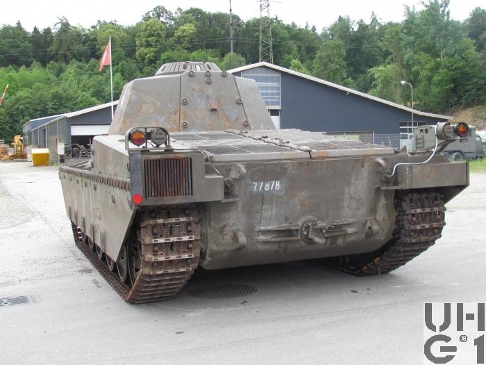 | Raupenart | Scharnierraupe aus Mangan Hartstahlguss 96 Raupenglieder pro Seite 10 Raupenglieder Reserve, im Fahrzeuginnern 1'318 kg Gewicht Raupe komplett 13,2 kg Gewicht Raupenglied |