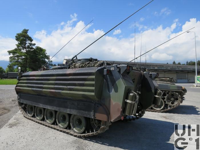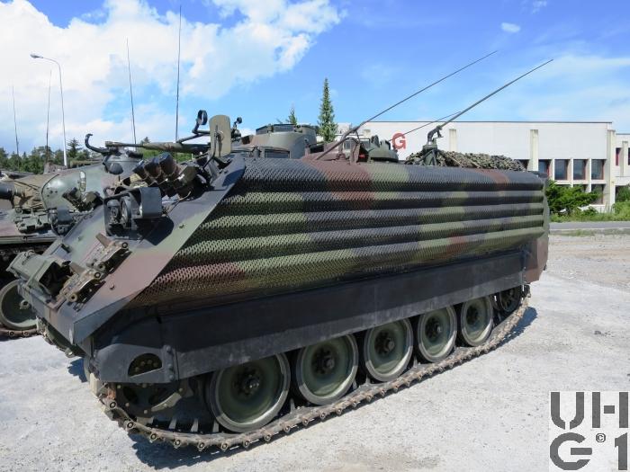 | Bemerkungen | Verbesserungen zu Spz 63/73 Neuer stärkerer Motor 6V53T mit Turbolader Neues Schaltgetriebe TX 100-1A Neue und verstärkte Antriebs- und Übertragungswellen Neue und verstärkte Kreuzgelenke Neuer Seitenantrieb Verstärkte Bremstrommeln Neue Bremsbelagselemente aus CH Material Verstärktes Fahrwerk Das verbesserte Fahrwerk beinhaltet: Torsionsstäbe aus Hochfestigkeitsstahl Einbau von Stossdämpfer bei Schwingarm Nr. 1, 2, und 5 Verstärkte Spannradaufhängung Neues Treibstoffsystem mit zwei Aussentanks, dadurch diverse Verstärkungs- und Anpassungsarbeiten am Fahrzeugheck Verbesserte Heizung Geändertes Kühlsystem Geändertes Luftfilter / Auspuffsystem Geändertes Kühlerzubehör / Ventilatorsystem Je 3 Stück 7,6 cm Nebelwerfer 87 an der Wannenfront oben links und rechts Zusatzpanzerung an Front, Seite und Heck mit den Firmen FMC (USA) und URDAN (Israel) Durch anbringen der Zusatzpanzerung musste die Beleuchtungsanlage vorne und hinten angepasst werden Hinten markiert eine zusätzliche Positionslampe die Zusatzpanzerung Neuer Flecktarnanstrich Neumöblierung des Panzers, das heisst: Sie wird der neuen Ausrüstung des Wehrmannes angepasst Es werden neu eingebaut: Diversae Munitionshalterungen Sturmgewehrhalterungen Rückenlehne Nebelwerferpatronen Halterungen Kiste für Zielgerät und Halterungen für die Pz Faust 3 Durchführung von Revisionsarbeiten Einteilung Pz Bat Pz Gren Bat |