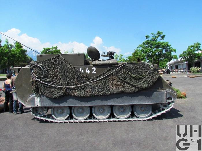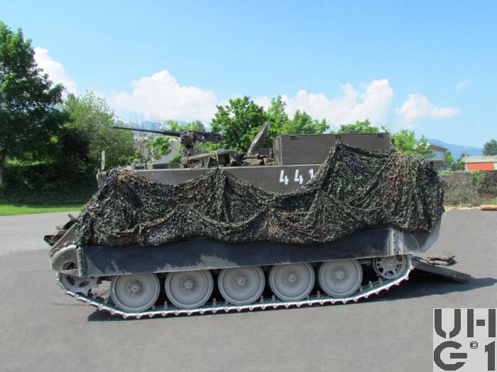 | Maschinengewehr | 1'260 Schuss 1. Bereitschaft 1 Metall-Koffer à  105 Schuss am Mg 2. Bereitschaft 11 Metall-Koffer à  105 Schuss im Mannschaftsraum links und rechts Unter den Sitzbänken der Mannschaft |