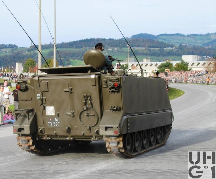 | Bemerkungen | Geschichte Nach einem längeren Auswahlverfahren mit mehreren Schützenpanzer Typen wurde schliesslich mit dem Rüstungsprogramm 1963 ein Kredit beantragt, über die Beschaffung von einer ersten Tranche von Schützenpanzer M-113. Mit den Rüstungsprogrammen 68, 74 und 79 wurden weitere Fahrzeuge bewilligt. Im Laufe der Jahre wurden verschiedene Schützenpanzer Typen angeschafft. Stückzahlen / Typen 520 Spz 63 575 Kdo Spz 63 140 Flt 63 132 Mw Pz 64 120 G Pz 64 61 Kran Pz 63 25 Uem Pz 63 Alle Fahrzeugtypen wurden ständig weiterentwickelt und den neuen Gefechtsfeld Anforderungen angepasst. Liquidation Ab 2006 wurden rund 550 verschiedene Typen entsorgt Ab 2012 wurden 330 Spz / Kdo Spz 63/89 entsorgt |
