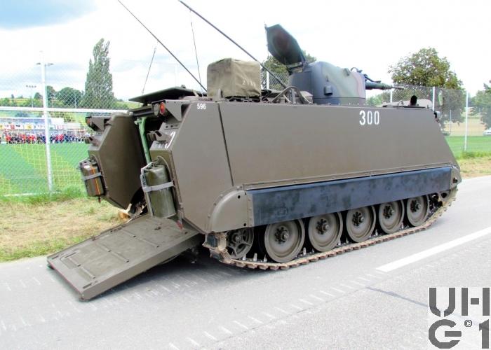 | Hauptwaffe | 20 mm Kanone 1948/73 Hersteller Hispano Suiza Genf Technische Daten 20 mm Kaliber 2'115 mm Gesamtlänge 1'512 mm Rohrlänge 1'397 mm Drallänge 12 Anzahl Züge Progressiever Rechtsdrall Gasdruck-Rückstosslader Luftgekühlt Fallriegel Block Verschluss 600 Schuss / Minute Schusskadenz 820 - 960 m / Sekunde (je nach Munitionsart) Anfangsgeschwindigkeit 46 kg Gewicht der Waffe 64 kg Gewicht Metall-Koffer für Munition gefüllt 8,5 kg Gewicht Metall-Koffer für Munition leer 600 kg Gewicht Waffenturm 360° Seitenrichtbereich - 10° bis +50° Höhenrichtbereich Abfeuerung elektrisch oder mechanisch Feuerart elektrisch Seriefeuer und Einzelfeuer Mechanisch Seriefeuer Waffensicherung elektrisch und mechanisch Spannvorrichtung mechanisch mittels Spannriemen Die 20 mm Kanone 1948/73 ist eine automatische Waffe mit einer hohen Schusskadenz. Sie besitzt einen kombinierten Gasdruck-Rückstosslader. Sie schiesst aus offener Verschlusstellung, d.h. erst durch die Betätigung der Abfeuerung wird eine Patrone in das Patronenlager eingeführt, der Verschluss mechanisch verriegelt und die Patrone gezündet Munitionszuführung: Munitionsgurte zu 140 Schuss oder Magazin zu 10 Schuss Kampfmunition 20 mm Hispano-Kan Mi Br G MZ HS 48 20 mm Hispano-Kan Pz Br G HS 48 20 mm Hispano-Kan Pz GV Lsp HS 48 20 mm Kan 48/73 Mi Br Pat 82 MZ 20 mm Kan 48/73 Mi Br Pat 82 MZ Lsp 20 mm Kan 48/73 Pz Ke Pat 83 Lsp Übungsmunition 20 mm Hispano Kan UG Lsp HS 48 20 mm Hispano Kan UG o Lsp HS 48 20 mm Hispano Kan EUG VZ Lsp HS 48 (Tankbahn) Manipuliermunition 20 mm Hispano Kan Manip Pat |