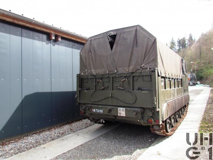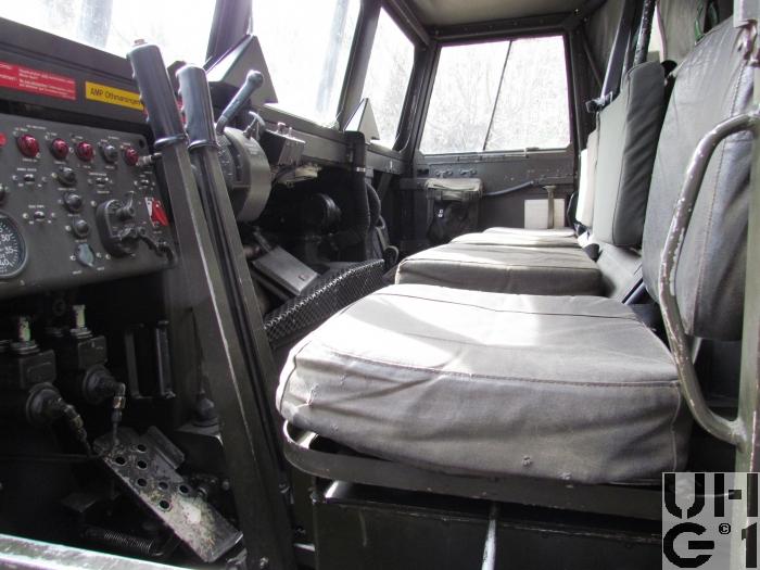 | Bemerkungen | Ladebrücke Für den Umschlag der Artilleriemunition sind alle Fahrzeuge mit einem elektrischen Flaschenzug versehen. 400 kg Max. Hublast Inhalt der Ladebrücke 10 Paletten à 8 Granaten 15,5 cm 20 Gebinde à 4 Ladungen Fahrerraumheizung Hersteller Stewart - Warner Typ 10560 - C 24 Betriebsspannung 20 bis 28,5 Volt Gleichstrom Heizleistung Vollast 15'000 kcal/h Heizleistung Teillast 7'500 kcal/h Gewicht 15 kg Brennstoff Diesel Seilwinde Einbauort Vorne Hersteller Gar Wood Typ DAV 615-19207 9'000 kg Max Zugkraft 90 m Seillänge 55 m Seillänge nutzbar 15,87 mm Seildurchmesser |