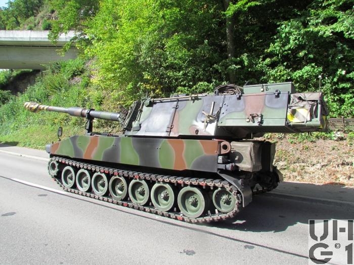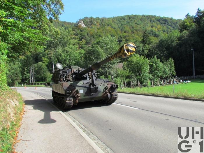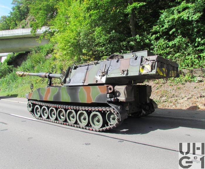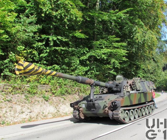 | Hauptwaffe | 15,5 cm Pz Hb, L-47 Hersteller Watervliet Arsenal, Watervliet, New York, USA Hersteller Rohr K+W Thun, Schweiz Entwickler Rohr K+W Thun, Schweiz Technische Daten 155 mm Kaliber 7'290 mm Rohrlänge 5'911 mm Gezogener Teil 60 Züge Konstanter Rechtsdrall - 3° bis + 54° Höhenrichtbereich 360° Seitenrichtbereich Rohrinneres vollverchromt Halbautomatischer Schraubverschluss mit Liderungsabdichtung und mechanischer Schussauslösung Rücklaufbremsen hydraulisch Vorholer pneumatisch Vorlaufdämpfer hydro-mechanisch Ladevorrichtung elektro-hydraulisch 3 Schuss in 15 Sekunden ab erstem Schuss 6 Schuss / Minute während 2 Minuten 2 - 3 Schuss / Minute dauernd ab geschlossener Pz Hb 1'650 kg Geschützrohr 270 kg Ladungsmagazin rechts 265 kg Ladungsmagazin links 180 kg Bodenstück mit Bodenstückring 165 kg Mündungsbremse 60 kg Bodenstückring 16 kg Rauchabsauger 22 km Schussweite Stahlgranate 22 km Schussweite Kanistergeschoss 88 22 km Schussweite SMArt 28 km Schussweite Kanistergeschoss 90 Kampfmunition 15,5 cm Hb St G oZ, Gewicht 42,1 kg 15,5 cm Hb Bel G oZ, Gewicht 44,3 kg 15,5 cm Hb Ka G 88 oZ, Gewicht 46,3 kg, bis 2012 im Einsatz 15,5 cm Hb Ka G 88/99 oZ, bis 2012 im Einsatz 15,5 cm Hb Ka G 90 oZ, Gewicht 41,6 kg, bis 2012 im Einsatz 155 mm SMArt, Intelligente Artilleriemunition, ab 2001 im Einsatz Übungsmunition 15,5 cm Hb EUG oZ, Gewicht 42,1 kg Manipuliermunition 15,5 cm Hb Trsp Manip G oZ 15,5 cm Hb Trsp Manip KaG 88 oZ Kampfladungen 15,5 cm Hb Ladg 3-7 15,5 cm Kan Ladg 7-9 15,5 cm Kan Cont Ladg 7-9 Übungsladungen 15,5 cm Hb U Ladg 2 L 47 Manipulierladungen 15,5 cm Hb Trsp Manip Ladg 3-7 15,5 cm Hb Manip Ladg 3-7 15,5 cm Kan Trsp Manip Ladg 7-9 15,5 cm Kan Manip Ladg 7-9 15,5 cm Trsp Manip Cont Ladg 7-9 15,5 cm Kan Manip Cont Ladg 7-9 Zünder ZZ 80 MZZ 88 AMZ 91 ZZ 99 ZZ 01 Manipulierzünder Manip ZZ 80 Manip MZZ 88 Manip AMZ 91 Manip ZZ 99 Manip ZZ 01 15,5 cm Hb Trsp Manip Z 15,5 cm Hb Trsp Manip MZZ 88 Zündpatrone 15,5 cm Hb Zü Pat Manipulierzündpatrone 15,5 cm Hb Trsp Manip Zü Pat 15,5 cm Hb Manip Zü Pat |