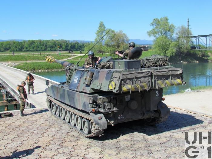 | Hauptwaffe | 15,5 cm Pz Hb, L-47 Hersteller Watervliet Arsenal, Watervliet, New York, USA Hersteller Rohr K+W Thun, Schweiz Entwickler Rohr K+W Thun, Schweiz Technische Daten 155 mm Kaliber 7'290 mm Rohrlänge 5'911 mm Gezogener Teil 60 Züge Konstanter Rechtsdrall - 3° bis + 54° Höhenrichtbereich 360° Seitenrichtbereich Rohrinneres vollverchromt Halbautomatischer Schraubverschluss mit Liderungsabdichtung und mechanischer Schussauslösung Rücklaufbremsen hydraulisch Vorholer pneumatisch Vorlaufdämpfer hydro-mechanisch Ladevorrichtung elektro-hydraulisch 3 Schuss in 15 Sekunden ab erstem Schuss 6 Schuss / Minute während 2 Minuten 2 - 3 Schuss / Minute dauernd ab geschlossener Pz Hb 1'650 kg Geschützrohr 270 kg Ladungsmagazin rechts 265 kg Ladungsmagazin links 180 kg Bodenstück mit Bodenstückring 165 kg Mündungsbremse 60 kg Bodenstückring 16 kg Rauchabsauger 22 km Schussweite Stahlgranate 22 km Schussweite Kanistergeschoss 88 22 km Schussweite SMArt 28 km Schussweite Kanistergeschoss 90 Kampfmunition 15,5 cm Hb St G oZ, Gewicht 42,1 kg 15,5 cm Hb Bel G oZ, Gewicht 44,3 kg 15,5 cm Hb Ka G 88 oZ, Gewicht 46,3 kg, bis 2012 im Einsatz 15,5 cm Hb Ka G 88/99 oZ, bis 2012 im Einsatz 15,5 cm Hb Ka G 90 oZ, Gewicht 41,6 kg, bis 2012 im Einsatz 155 mm SMArt, Intelligente Artilleriemunition, ab 2001 im Einsatz Übungsmunition 15,5 cm Hb EUG oZ, Gewicht 42,1 kg Manipuliermunition 15,5 cm Hb Trsp Manip G oZ 15,5 cm Hb Trsp Manip KaG 88 oZ Kampfladungen 15,5 cm Hb Ladg 3-7 15,5 cm Kan Ladg 7-9 15,5 cm Kan Cont Ladg 7-9 Übungsladungen 15,5 cm Hb U Ladg 2 L 47 Manipulierladungen 15,5 cm Hb Trsp Manip Ladg 3-7 15,5 cm Hb Manip Ladg 3-7 15,5 cm Kan Trsp Manip Ladg 7-9 15,5 cm Kan Manip Ladg 7-9 15,5 cm Trsp Manip Cont Ladg 7-9 15,5 cm Kan Manip Cont Ladg 7-9 Zünder MVZ 67 MZZ 68 MZZ 88 AMZ 91 ZZ 99 ZZ 01 Manipulierzünder Manip AMZ 91 15,5 cm Hb Trsp Manip Z Manip MVZ 67 Manip MZZ 68 Manip MZZ 88 15,5 cm Hb Trsp Manip MZZ 88 Manip ZZ 99 Zündpatrone 15,5 cm Hb Zü Pat Manipulierzündpatrone 15,5 cm Hb Trsp Manip Zü Pat 15,5 cm Hb Manip Zü Pat |